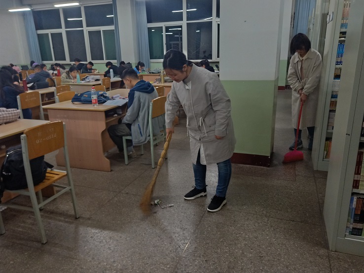 活动开展期间,同学们携带抹布、水桶、洗衣粉等清洁工具对图书馆书库、自习室进行了清扫,对馆内的书架、窗台、地面进行认真清理。每次活动持续两小时左右,同学们有条不紊的打扫完成后,图书馆焕然一新,最后安静有序的离开了图书馆。