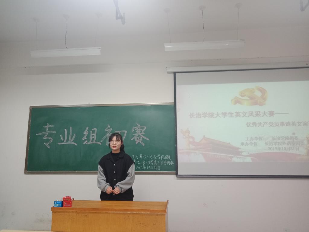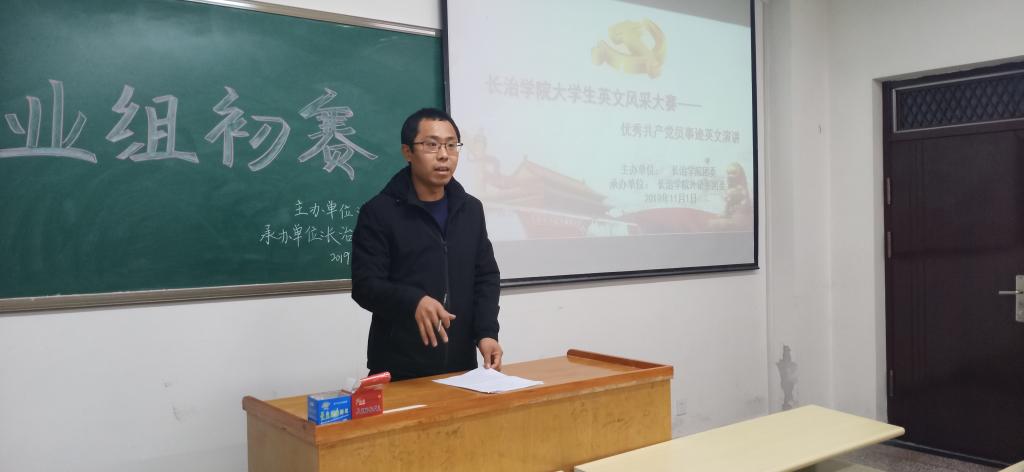 为落实立德树人根本任务和“课程思政”理念,促进学生全面发展,提升立德树人的针对性和实效性。同时加强“课程思政”与第二课堂对接,将英语教学、科研与比赛活动紧密结合,以达到“以赛促学、以赛促教、以赛促研”的最佳效果。10月31日晚7:30,优秀共产党员事迹英文讲演比赛初赛在我校1号楼203教室顺利举行。