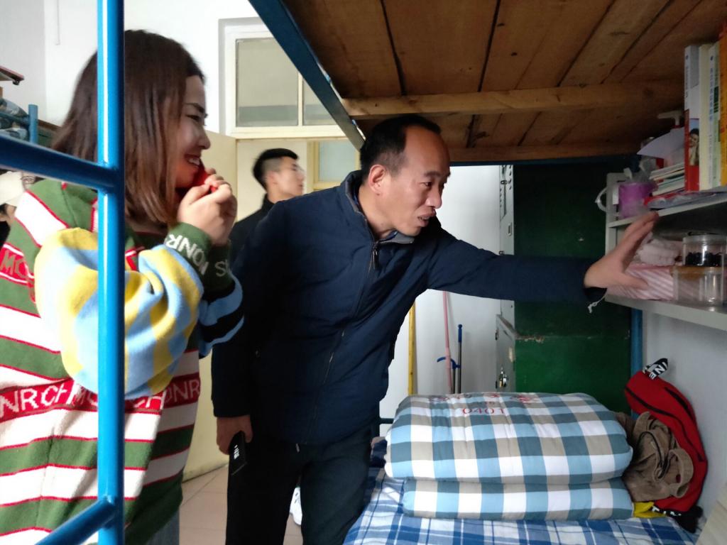 11月26日下午三点,我系举行示范宿舍挂牌仪式,我院学生处公寓管理科科长李永兵参加了此次挂牌仪式,并为“示范宿舍”颁发示范宿舍标牌。在颁发示范宿舍标牌的过程中,李老师首先对示范宿舍中每位同学取得的进步表示充分肯定,并且鼓励同学们继续保持宿舍的整洁,始终以“示范宿舍”的高标准来严格要求自己,共建和谐美丽的宿舍环境。