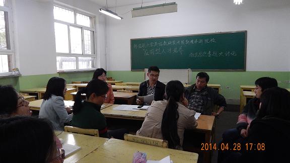 本次讨论的主题为“应用型人才培养”教育思想。会议由各个教研室主任主持,系领导分别参加教研室讨论。老师们结合我系实际纷纷发言,从教师转型、教材转型、学生实践转型、人才培养模式的制定等等一系列都提出了相应的观点。大家普遍认为,应用型人才培养符我校当前实际,需循序渐进。