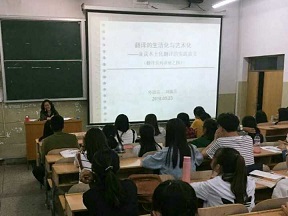 5月23日晚19:30-21:30,我系于综合楼104成功举办了题为“翻译的生活化与艺术化――兼谈本土化翻译的实践意义”的翻译讲座。本次讲座的主讲人为我系翻译学与比较文学教授刘满芸老师,全院200多名学子到场聆听,讲座氛围浓厚,全场座无虚席。刘老师以“你把翻译当生活,生活还你以艺术”为切入点,引出“翻译的态度、过程和结果”这一话题,对语言与文化的复杂关系进行解读,以中国“五四运动”时期的翻译为例对时代背景如何影响翻译方法的选择进行剖析,结合当代翻译理论与实践的发展趋势以及本校学生的翻译学习需求,深入分析了两种英汉语言之间的基本差异,并以大量实例,说明语言对比分析在翻译实践中的作用。刘老师就如何提高学生的跨语言文化认知与转换能力,给出了方法:摹仿经典,善于对比,遵循规律,学会取舍。刘老师强调生活是翻译成长的摇篮,也是翻译成长的过程;生活是理解语言的基石,艺术是翻译质化和升华的结果。讲座将大家带入了绚丽的翻译世界。