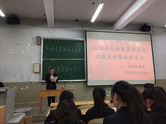 大会伊始,贾婷婷老师对我系2018年暑期社会实践进行了总结,她指出:2018年炎热的暑假中,在系领导的关心及实践地点校领导领导的支持下,在指导老师及实践学生的努力下,本次暑期社会实践活动取得了丰硕成果。本次实践使同学们积累了一定的知识与经验,为大家今后更好的走向社会奠定了扎实的基础,同时对18级新生寄予殷切期望,希望明年大家可以积极参与奉献力量。