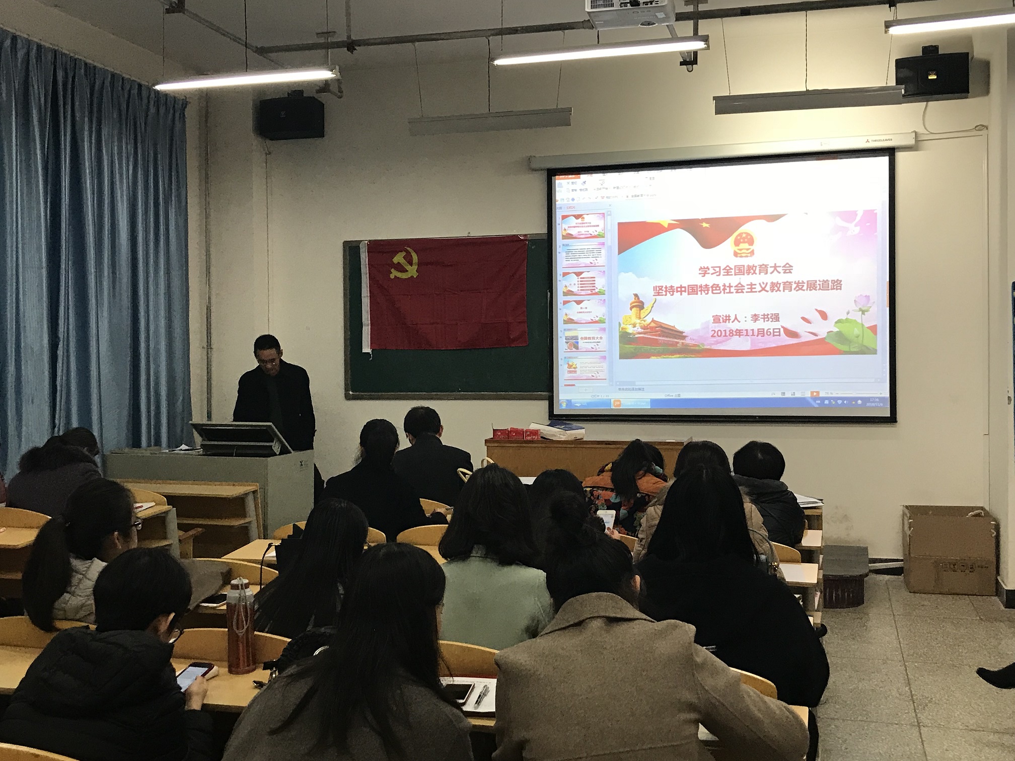 11月6日下午,我系召开学习贯彻落实全国教育大会精神宣讲会,全体教师参加会议,党总支书记李书强就如何深入领会全国教育大会精神进行宣讲,并和大家进行交流。宣讲着重从三个方面进行: