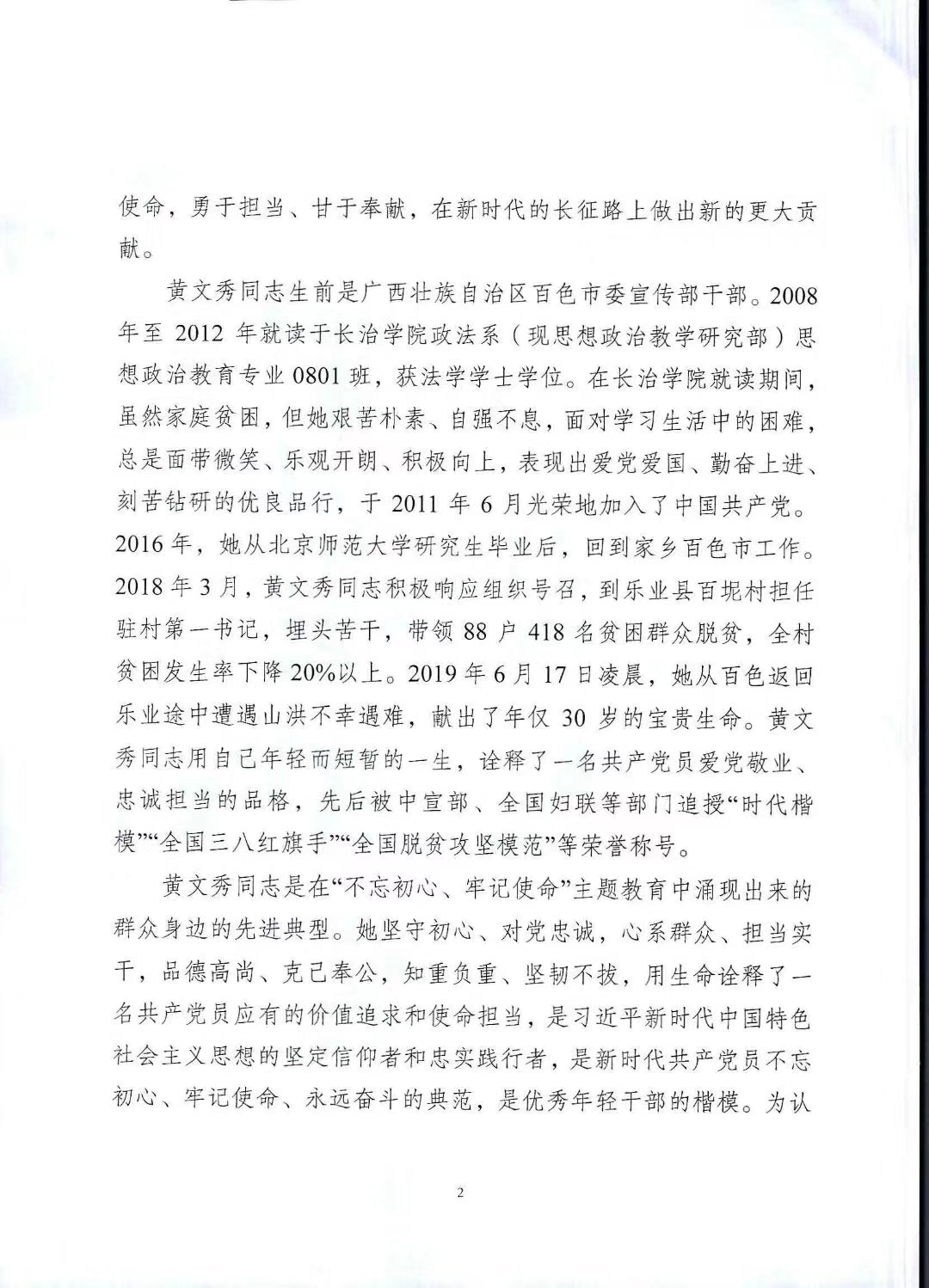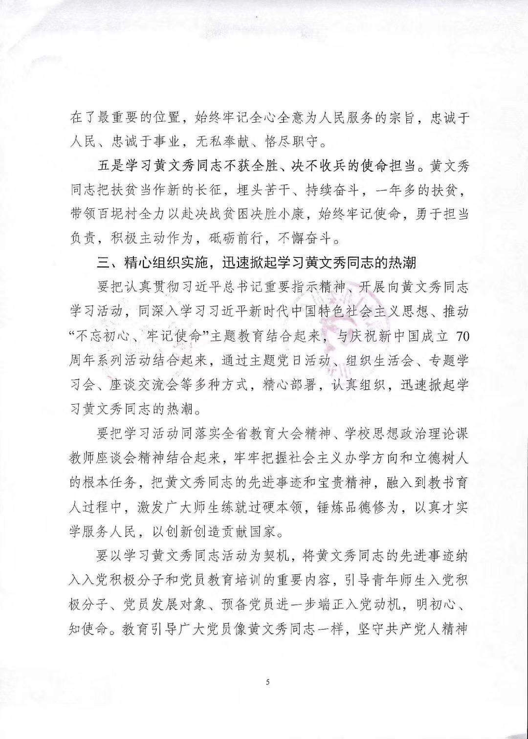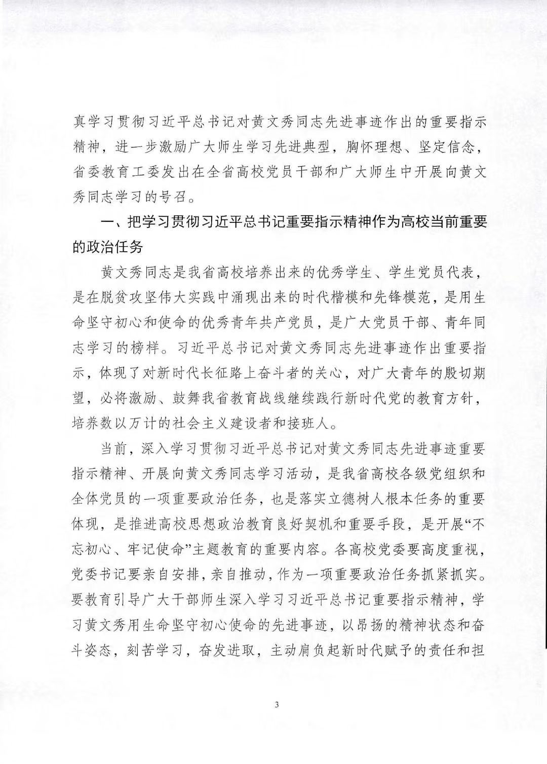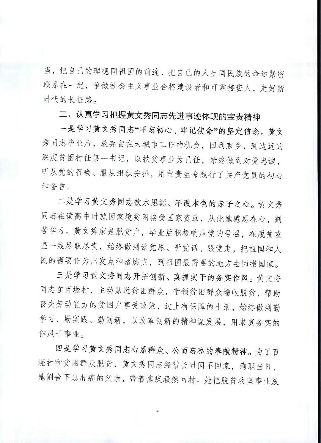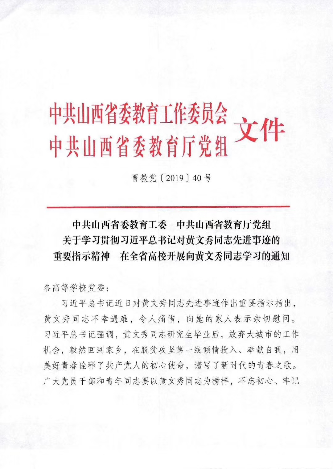 习近平总书记对我校优秀校友、优秀共产党员黄文秀同志先进事迹作出重要指示,为更好的学先进、学榜样,用黄文秀先进事迹激励全系师生,根据省教育工委、省教育厅文件要求,要求全系师生结合文件精神,深入开展向黄文秀同志学习。