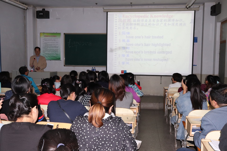 随后,王教授在简要介绍外语专业情况的基础上,主要围绕英语教学的新形势、翻译教学的新问题和人才培养的新要求三个方面展开讲述。紧接着提出外语学科因为一窝蜂跨越式的发展速度,英语专业相应会存在一些问题,所以对在翻译教学过程中教师和学生可能出现的问题进行了重点分析。