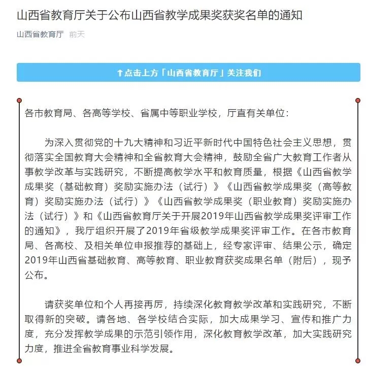 热烈祝贺我系荣获山西省教学成果二等奖两项