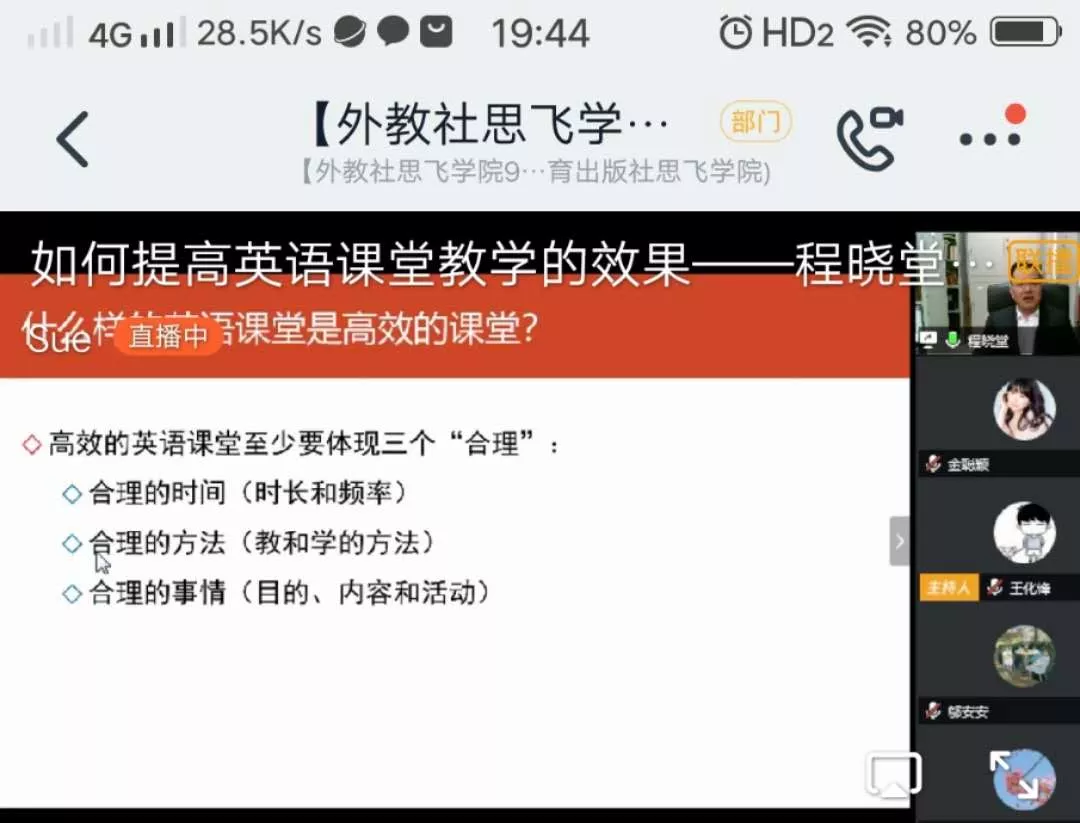 疫情期间,为确保教学质量,进一步做好“停课不停学”,我系语言学教研室于5月6日晚组织本教研室教师观看了由上海外语教育出版社举办,由北京师范大学程晓堂教授主讲的题为“如何提高英语课堂教学的效果”的学术讲座。