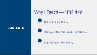 林老师讲解的是大学英语(第三版)精读:第三册-UNIT 3:Why I Teach,根据课文内容,把思政内容以及中国文化紧密地融入到课前活动、课文分析以及课后练习等教学环节。本文主要融入的思政元素是爱岗敬业。作者熬红了眼,时刻担心自己有没有让学生失望,上课时紧张的手心出汗,以及精心设计教学活动等细节体现了主人公热爱教师这个职业以及用心塑造学生的敬业精神。通过学生对教师这份职业的讨论,激发学生对知识和生活的热爱。通过分析作者教书的原因,来进一步讨论大学教育意义,培养学生的思辨能力,帮助学生形成的正确的人生观和价值观。
