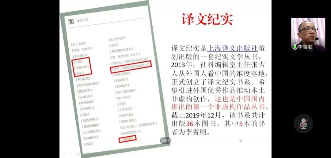 首先,李雪顺教授介绍自己的教育背景,学校和城市,并介绍译作和翻译特色,鼓励同学们要有自信,大胆追求自己的梦想。