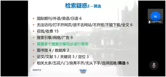 为提高我系学生的信息检索与科创能力,继教师专场后,2020年7月3日晚,我系在腾讯会议举办了“信息检索与科创讲座”学生专场,特邀华东师范大学图书馆研究支持部副研究馆员郭劲赤老师为我系学生担任主讲嘉宾。我系近300名学生聆听了本次讲座,并积极地与郭老师进行互动。