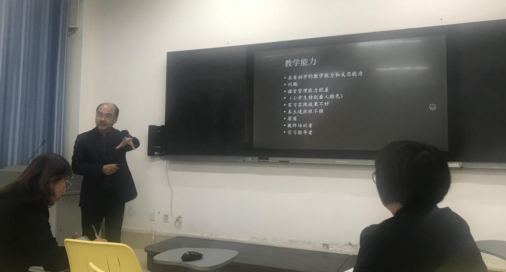 讲座最后,我系老师就科研方法和教学方法与岑教授进行了互动交流。这次交流使我们深感:教育和教学工作者应立足学生需求、遵守语言学习基本规律、注重实践教学、改进教学组织形式和教学方法、加强师生交流与互动,从而提高职前教师教育课程教学的实效性。