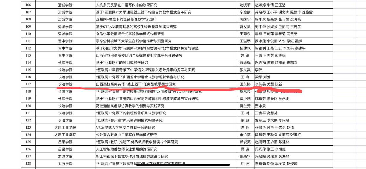 2020年10月30日,我系田东婷老师团队的《山西省商务英语“线上线下”任务型教学模式研究》获批山西省教育科学院专项课题。该课题是继2020年度教育部人文社会科学规划基金项目《我国基础教育阶段外语教师教学专长本土化研究:标准、工具及实证探索》之后,必威西汉姆联TBLT教学研究团队在成立不到1年时间内获批的第三个省级及以上课题。