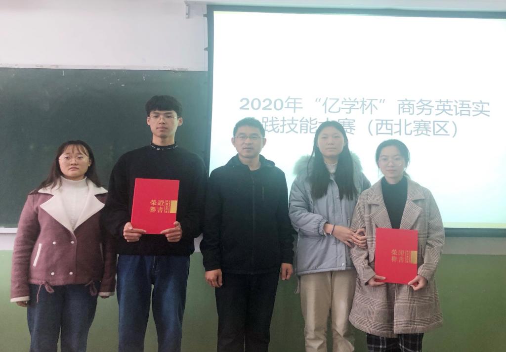 2020年“亿学杯”全国商务英语实践技能大赛由中国国际贸易学会国际商务英语研究委员会主办,厦门亿学软件有限公司协办,共有来自全国各省/市的620支队伍参与了比赛。本次大赛由商务知识软件平台竞赛和商业提案现场比赛两部分组成。经过激烈的角逐,我系的三只队伍获得了西北赛区一项二等奖和两项三等奖。