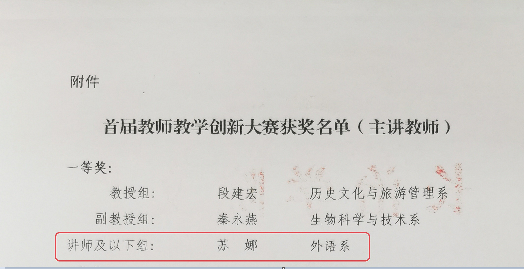 此次比赛是自教育部2020年5月28日印发《高等学校课程思政建设指导纲要》(教高〔2020〕3号)以来全国首次外语类课程思政教学比赛。在初赛中主办方共收到来自全国29个省市自治区、700多所高校的1500余件参赛作品,我系共有18件作品参赛,有10件作品获得决赛一阶段晋级资格,占山西省高校21件入围参赛作品近一半,是省内入围作品数量最多的高校。在决赛阶段,我系教师田东婷、李伟英团队参赛作品入围决赛二阶段,是山西高校唯一入围本科英语专业组总决赛的作品。经过紧张角逐,田东婷、李伟英团队获得本科英语类专业组比赛一等奖,我系多名教师作品获得决赛二等奖。
