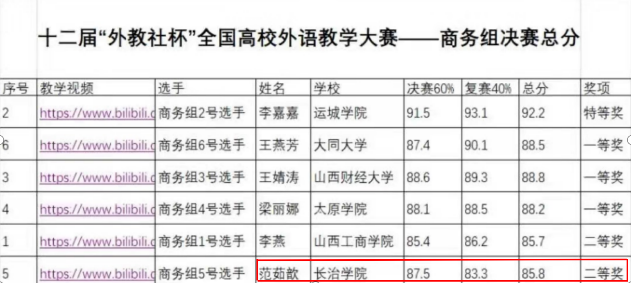 为提升外语教学质量,推进高校外语师资队伍建设,促进教师发展,2021年5月至10月,由上海外语教育出版社有限公司和山西省高等院校外语教学研究会联合举办的第十二届“外教社杯”全国高校外语教学大赛(英语类专业组)山西赛区经历了复赛和决赛两轮线上角逐,圆满落幕。我系教师范茹歆在此次决赛中荣获山西赛区商务英语专业组二等奖。