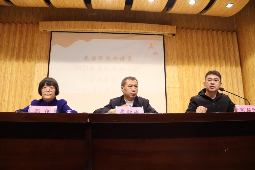 大会伊始,张朝阳老师介绍了大会参与人员并对新生表示了欢迎。会上,党委书记晋胜利从三方面对新生提出了建议和要求,强调大学生要有爱党爱国情怀,今年是建党100周年,要积极向党组织靠拢,与党同行,努力学习民族文化,提高专业技能,规划学业目标,利用丰富的资源开始书写人生奋斗新篇章。