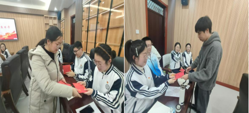 会议第六项,在转正仪式上,支部书记董宁宁同志、支委委员平渊同志向新转正的党员颁发了政治生日卡,以纪念他们加入中国共产党这一重要时刻。政治生日卡不仅是对党员政治生涯的肯定,也是对他们未来继续为党和人民服务的期望和鼓励。