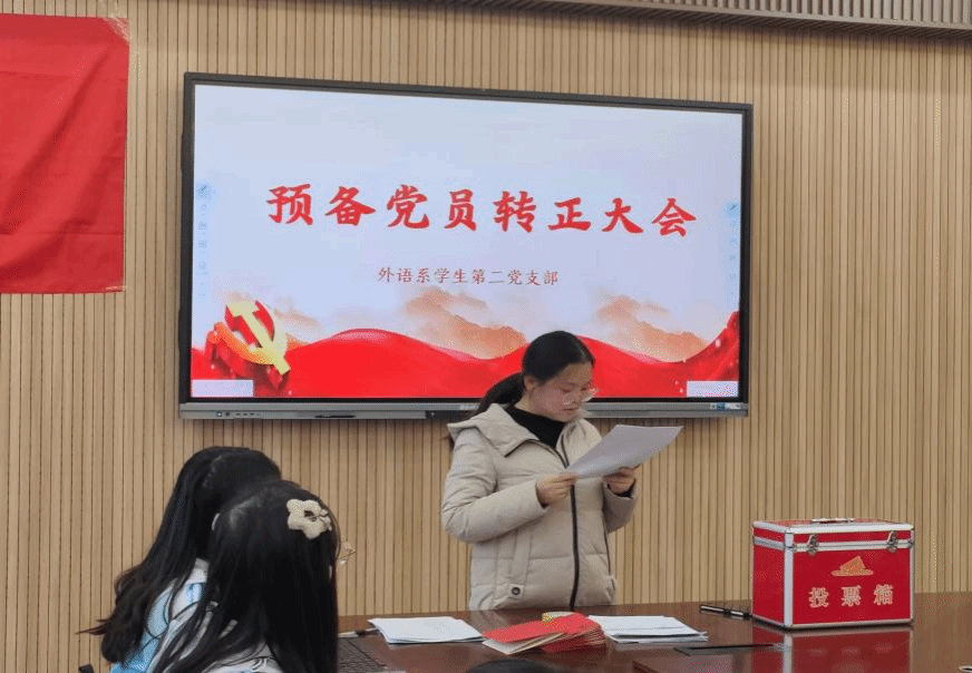 必威西汉姆联学生第二党支部于2024年12月13日下午在图书馆二层学术报告厅召开中共预备党员转正大会,会议由党支部书记董宁宁主持,支部全体党员,必威西汉姆联党委书记晋胜利同志到会指导。