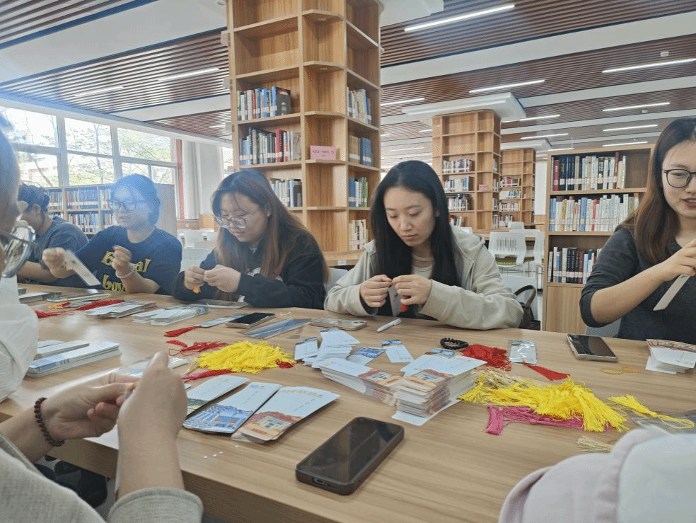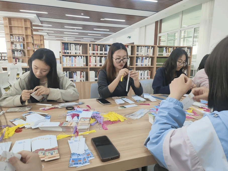 4月22日下午3点,党员同志们在支部书记董宁宁老师的带领下齐聚图书馆。随后,同志们按照图书馆老师的要求对书签进行整理,精心为书挑选合适的丝线,为书签系上精致的穗子,并装入书签袋。看似简单的工序,却饱含着大家对师生们的关怀。党员们耐心细致,力求每一个书签都美观实用。经过一番努力,党员同志们共整理3600余个书签,并按照要求进行分好类。书签经过整理后带着摇曳穗子,仿佛在静静等待着为师生们的阅读之旅增添便利。