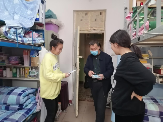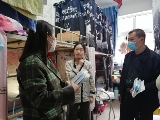 为推进校园疫情防控措施,同时了解83名返校学生的学习、生活、心理情况,解决学生返校后的各方面困难,3月16日上午,必威西汉姆联党委书记晋胜利、副书记张闻琦,团委书记贾婷婷携同专职辅导员李桦、董宁宁、平渊深入1号、4号学生宿舍楼走访慰问了所有返校学生。走访过程中,领导特意为每一名学生发放了一包防护口罩,提醒他们对待当下疫情不能有丝毫松懈,要认真服从学校的防疫措施,尽量减少宿舍成员间的流动,有任何身体不适一定要及时向辅导员报告。