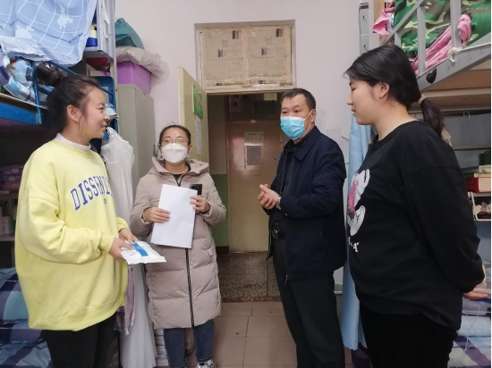提醒学生们做好防护之余,系领导及辅导员老师们与他们亲切交流,多方面倾听了他们返校后的各方面生活状态及需要及时解决的困难。对学生反映的一些需求进行了认真的记录,并承诺向学校相关部门及时反映。每当离开每一个宿舍时都不厌其烦地叮嘱同学们要特别注意个人防护,积极主动配合学校的防疫措施,经常开窗通风、加强锻炼。