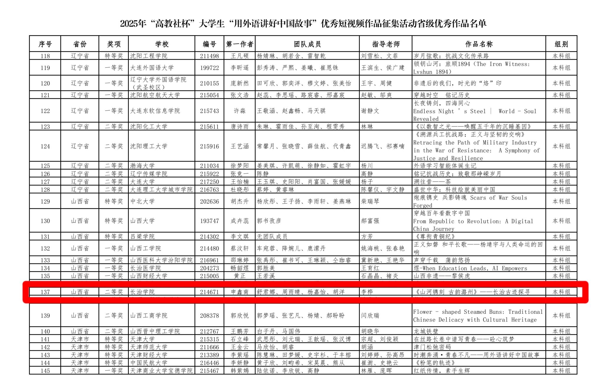 近日,2025年“高教社杯”大学生“用外语讲好中国故事”优秀短视频作品征集活动省级评选结果揭晓,我系学子荣获山西省二等奖!