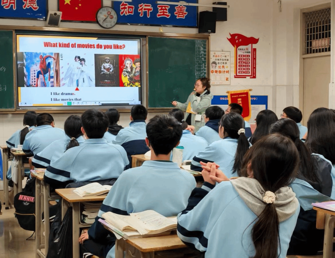 之后我也开始尝试自己的课堂。针对初三阅读课畏难情绪,我设计分层任务,融入话题导入、小组讨论等互动形式,并根据指导老师建议与学生反馈优化教学,加入趣味活动激活课堂,把课文与生活联系起来。一次电影主题单元,我加入了“电影心情配对”活动:播放不同片段,让学生从课文中匹配形容词。平时沉默的女孩突然举手:“这段让我想到‘exciting’!”她眼中的光亮让我确信,课堂是师生共织的生长时刻。除了课堂教学外,我格外注重在日常生活中抓基础,每天清晨,我带着学生大声朗读,逐个纠正发音;坚持每日听写,对基础薄弱的学生单独辅导。有个男孩起初总是错一大半,我教他拆分词根、联想记忆,后来他举着全对的听写本兴冲冲地跑过来说:“老师,我全对了!”那一刻我明白,耐心真的能浇灌出成长。期中考试后2310班英语均分获年级第二。指导老师拍着我的肩说:“你看,用心会被看见。”