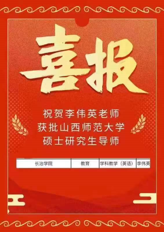 喜报 祝贺李伟英老师获批山西师范大学硕士研究生导师