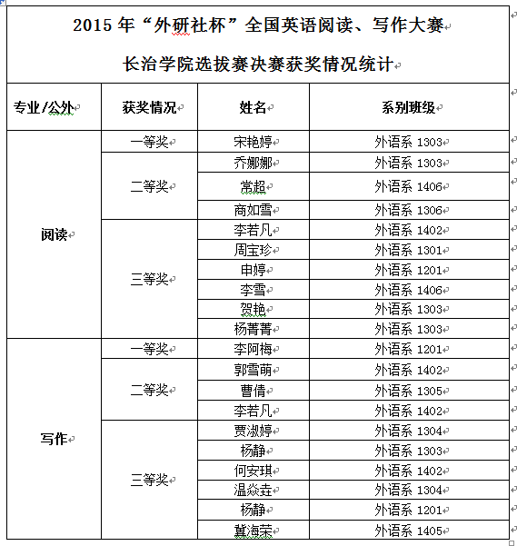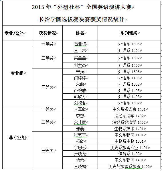 2015年“外研社杯”英语演讲选拔赛非专业组获奖结果公示