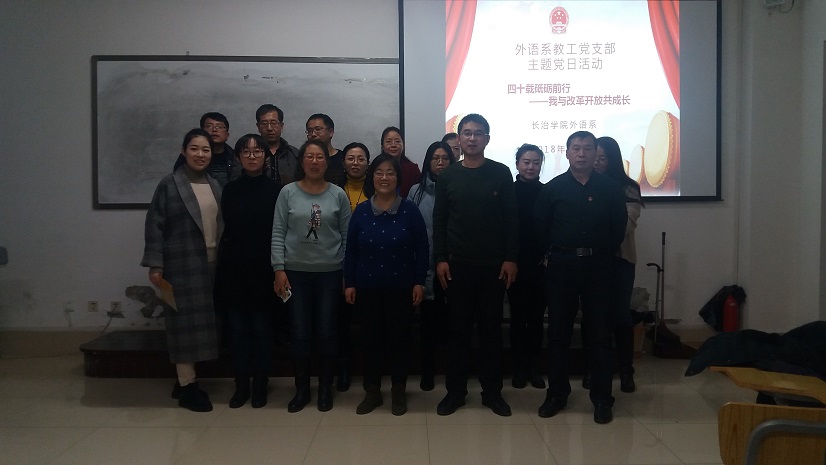 2018年12月18日15:30,1号教学楼505教室,必威西汉姆联教工党支部举办12月主题党日活动,主题为“四十载砥砺前行——我与改革开放共成长”,刘满芸、张闻琦、郭允雪、努吉娅四位同志请假,其余党员全部参加。
