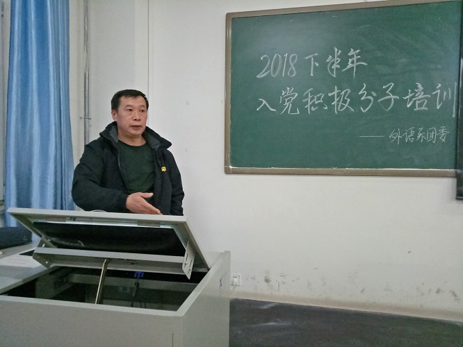 按照本期入党积极分子培训方案的要求,10月23日下午,我系于1号教学楼211教室举行了2018年下半年入党积极分子培训班第三讲。本次培训的主讲人是公共英语教研部主任晋胜利,44名培训班学员到场参与课程学习。