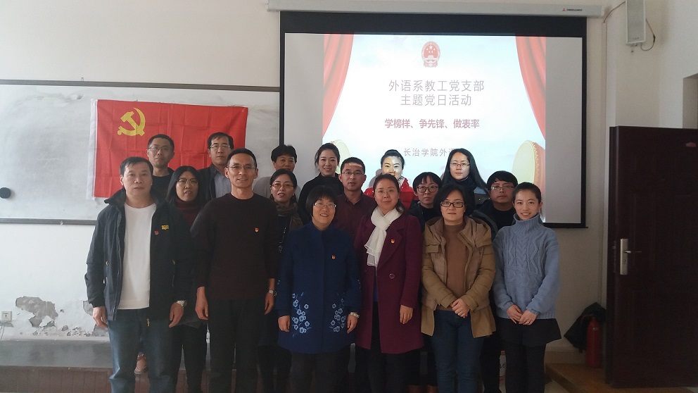 2018年11月27日14:30,1号教学楼505教室,必威西汉姆联教工党支部举办11月主题党日活动,主题为“学榜样、争先锋、做表率”,刘满芸、张闻琦、郭允雪、栗香翠四位同志请假,其余党员全部参加。