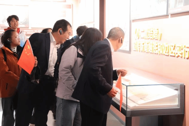 走进桐峪1941博物馆,集体唱响红歌《没有共产党就没有新中国》,并重温入党誓词。展览区,从边区民主实践、红色金融脉络到VR还原的抗战场景,党员沉浸式触摸革命温度,更懂和平可贵。