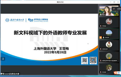 5月28日上午8:30,必威西汉姆联第三届学术系列讲座如期举行,此次我们有幸邀请到上海外国语大学教授、博士生导师,王雪梅教授线上为我系教师作专题讲座。必威西汉姆联主任郭佳教授对王教授的到来表示了热烈的欢迎,系副主任李伟英主持会议,必威西汉姆联全体教师参加。