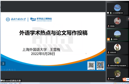 王雪梅教授的第二场讲座聚焦外语学术热点与论文写作投稿。王教授从发文量、被引量、关键词聚类等维度向我们介绍了最新的外语研究趋势和热点,运用大量案例,介绍了外语课程思政研究、教学素养研究、外语规划研究、翻译研究、外国文学和比较学研究、文学伦理学等不同研究领域的选题,同时也介绍了一些小众研究选题来开拓视野。谈到论文写作时,王教授带着大家回顾了一些写作常识,例如文献综述类、实证类、理论思辨类的论文结构以及定性研究、定量研究和混合研究方法,摘要的写作方法等等。此外还介绍了近年各个期刊的文章选题、近三年语言学重大项目和高端论坛的热点等,引导老师们从中寻找灵感,获得启发。