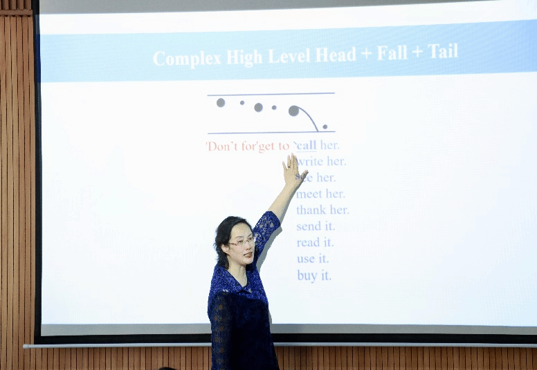 在讲座中,卜老师结合中国英语学习者语音习得的典型问题,重点围绕英语中的重读与语调两个核心内容展开深入讲解。她结合自身丰富的教学经验,分析了中国学生在语音学习中常见的语调误用、重读模糊等问题。通过大量课堂实例,卜老师展示了如何引导学生在语境中掌握重读规则,如何借助图示与朗读练习等手段提升语调意识。她强调,重读和语调不仅是语音训练的重点,也是英语表达中情感和意图传递的重要载体。