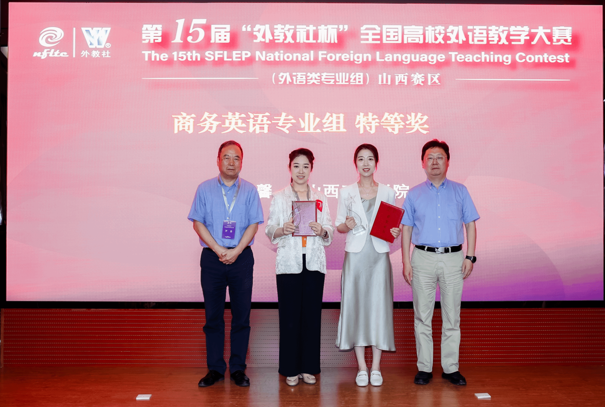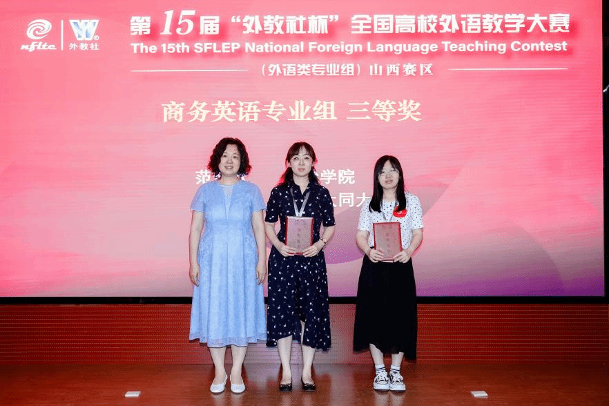 622日,第15届“外教社杯”全国高校外语教学大赛山西赛区赛在山西大学外国语学院举行,系两名教师获得决赛资格,喜获佳绩。程娇老师荣获英语专业组特等奖,并代表山西省出征国赛。范如歆老师荣获商务英语专业组三等奖。