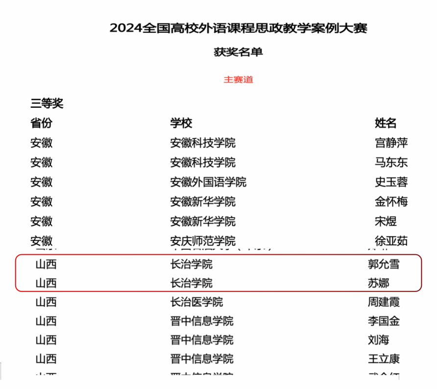 在外研社举办的2024年全国高校外语课程思政教学案例大赛中,我系教师郭允雪、苏娜分别荣获三等奖。