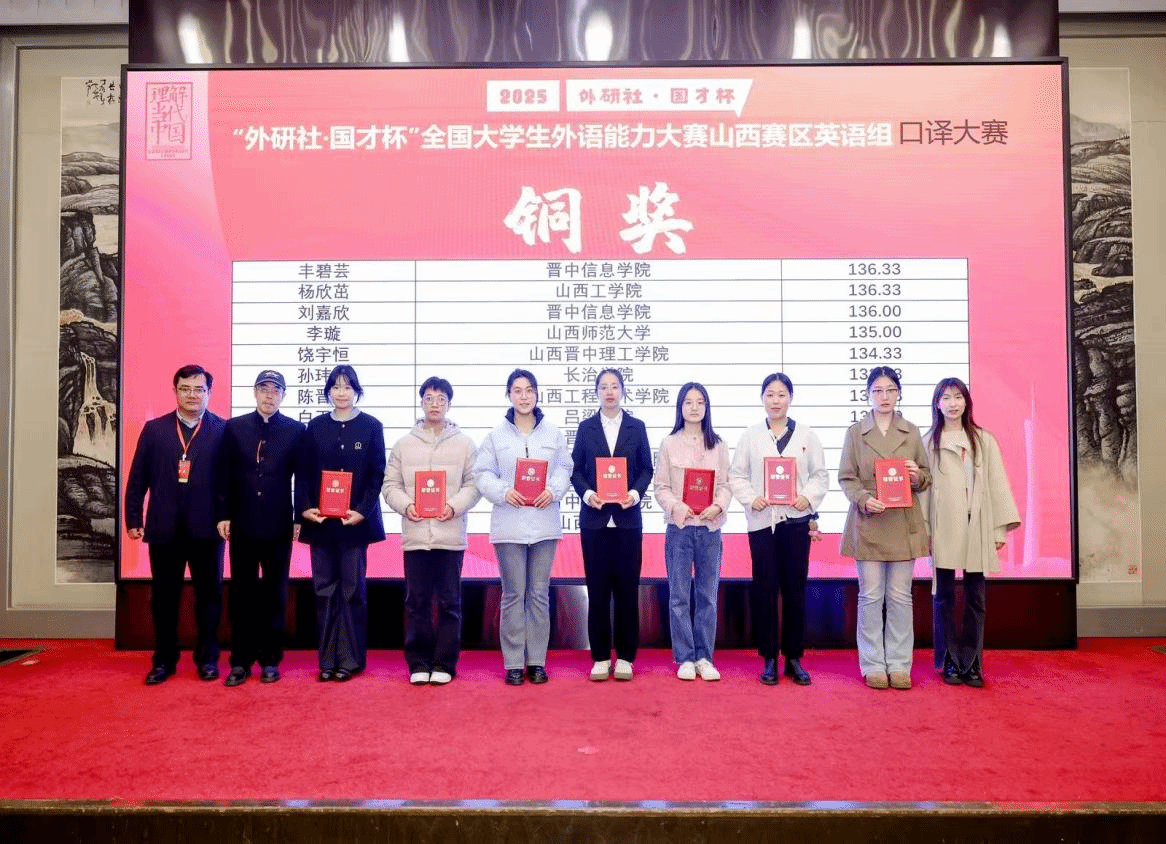 2025年度“外研社·国才杯”“理解当代中国”全国大学生外语能力大赛省赛于111日在太原落下帷幕我系学子在英语组综合能力演讲笔译口译、短视频赛项和多语种(日语)综合能力、短视频赛项山西赛区角逐中,取得省赛金奖2项、银奖5项、铜奖10项的好成绩。
