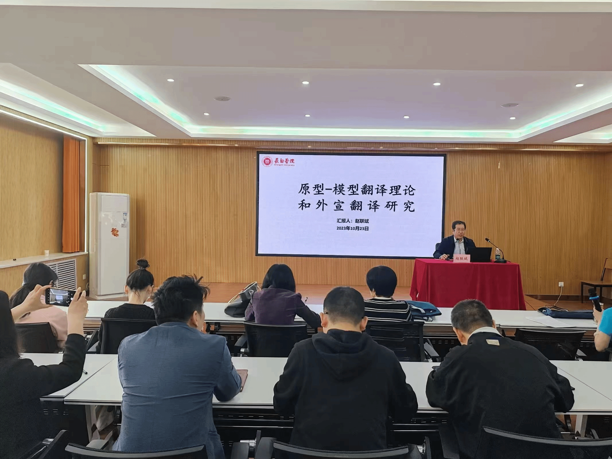2023年10月23日下午,应河南理工大学外国语学院邀请,我系赵联斌教授在河南理工大学文综楼302室作了题为“原型-模型翻译理论和外宣翻译研究”的学术讲座。该讲座由外国语学院副院长李红主持,外国语学院全体教师、翻译硕士研究生100余人聆听了讲座。
