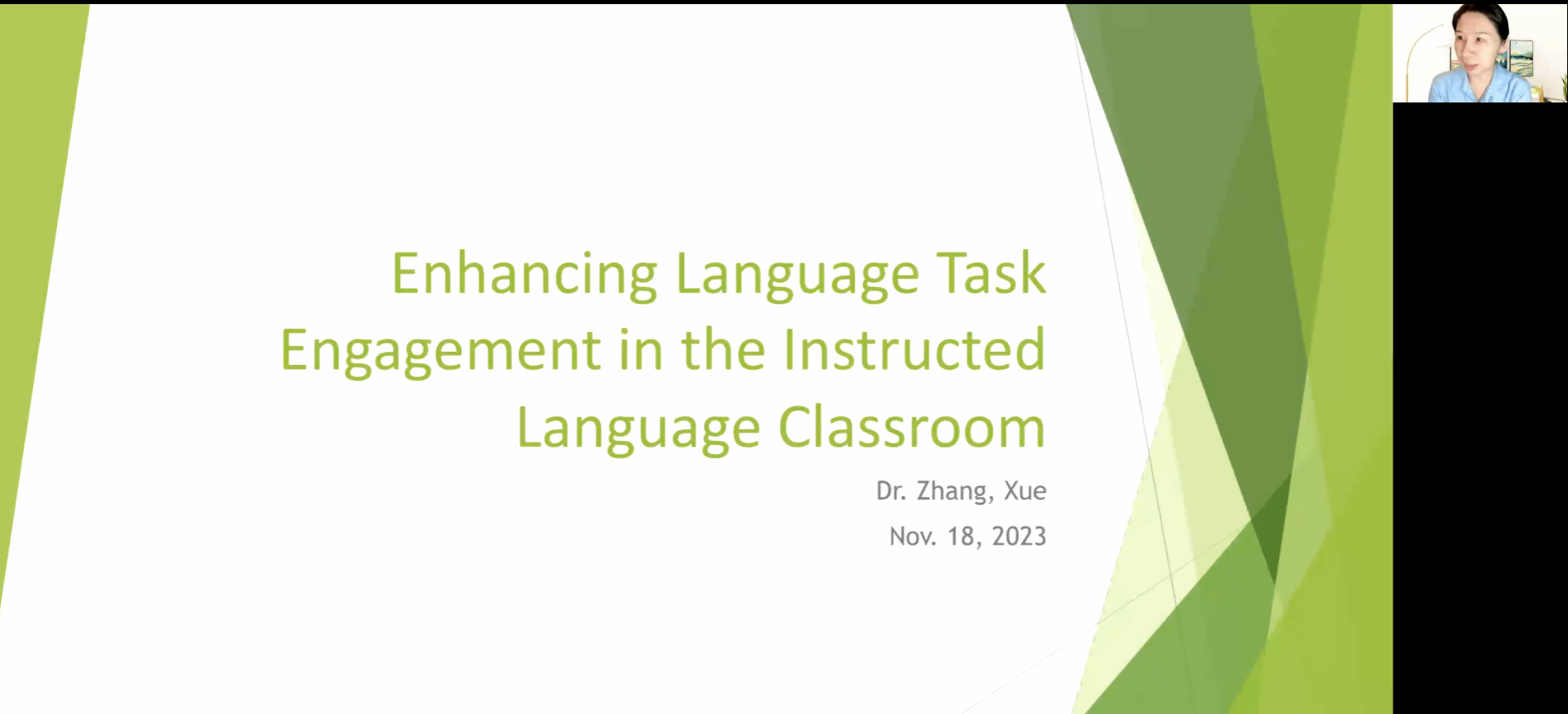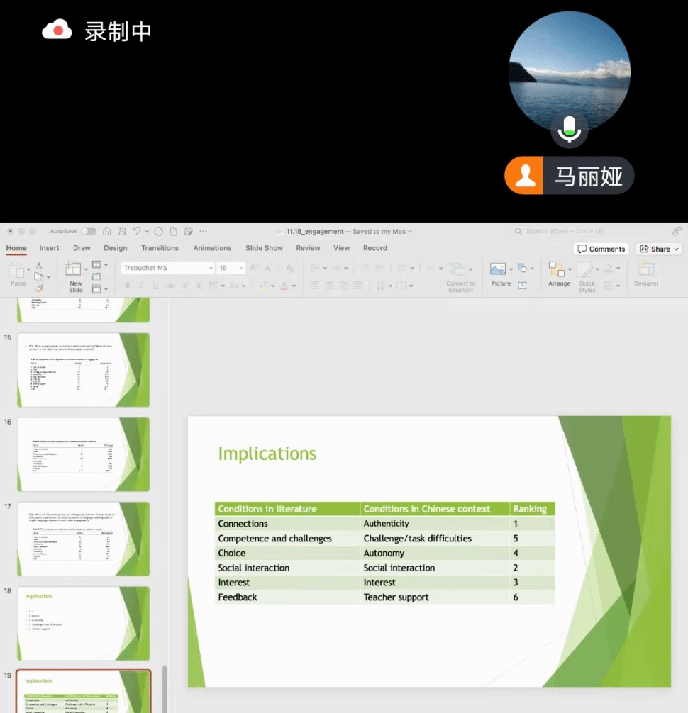 2023年11月18日,毕业于美国华盛顿州立大学的张雪博士应邀为我系教师做讲座。讲座题为:“Enhancing Language Task Engagement in the Instructed Language Classroom”,必威西汉姆联全体教师参加,副主任马丽娅主持。