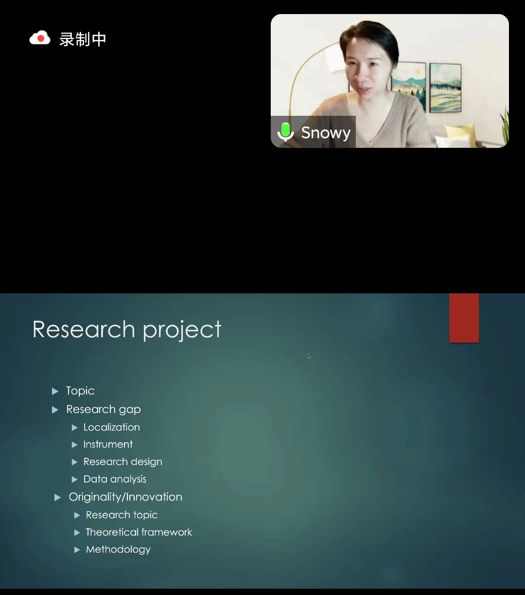 讲座中,张雪博士首先结合自己的学术研究经验,就自己如何在英语演讲课的教学过程中发现问题,形成论文选题,进行教学研究和论文撰写进行了经验分享,并就教学与科研的关系以及如何以教学带动科研等进行了讲解。随后,张雪博士以自己的论文为例,重点介绍了论文的基本结构,以及如何进行文献检索,确定研究选题、研究方法和研究工具等。教师们也就自己在科研论文中存在的问题和困惑与张雪博士进行了交流讨论。老师们纷纷表示张雪博士的讲座内容生动详明,循循善诱,通过聆听本次讲座开拓了学术视野,对国外学术论文写作和发表有了更深刻认识,受益匪浅。