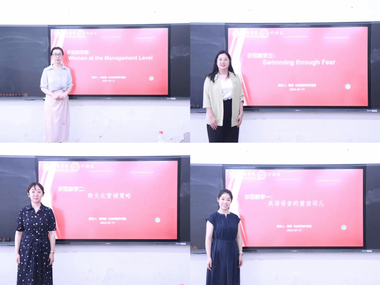 下午的示范教学环节由我系副主任马丽娅老师主持长治医学院谢婷老师、周建霞老师和betway西汉姆联程娇老师、范茹歆老师在1号教学楼102教室进行了教学展示和交流。四位教师展示的题目分别为Swimming through FearWomen at the Management Level、《英语语音的重读词儿》、《跨文化营销策略》,涉及挫折教育、女性自我价值实现、社会主义核心价值观相关词汇发音、尊重文化差异及世界大同等育人元素。老师们教学语言标准,教学方法灵活,教学设计新颖。与会教师认真学习和交流,纷纷表示环节不仅让他们看到了思政教育在外语教学中的可行性,也为他们提供了宝贵的教学灵感和方法。