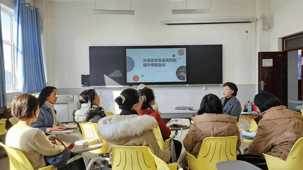 马丽娅老师首先强调了提升各专业学生专四成绩的紧迫性和必要性,并提出了一些建议和要求,例如在课堂上进行强化训练,着重夯实基础,增加模拟练习频率等。参会教师根据自己的教学经验和体会,从听说读写不同的角度,进行讨论和反思,一致认为要努力提升学生的主观能动性,减少其过度依赖手机和AI的情况,并增加一定课时进行专题模块训练。