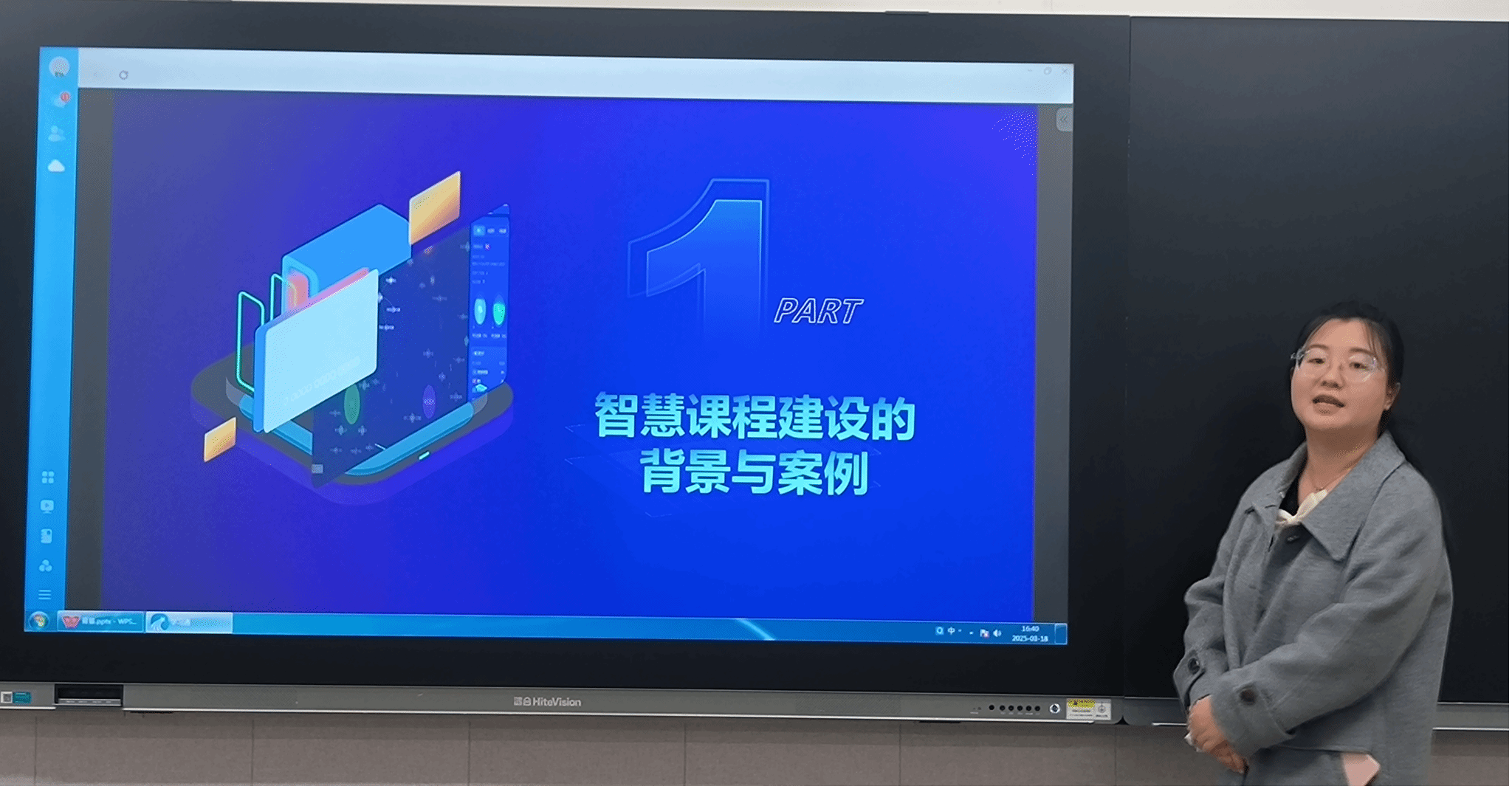培训专家段老师以《智慧课程赋能教学新范式改革》为主题,通过理论讲解、案例分析、实操演示和互动交流等多种形式,为教师们讲解了如何运用AI智能体、知识图谱、任务引擎建设智慧课程。