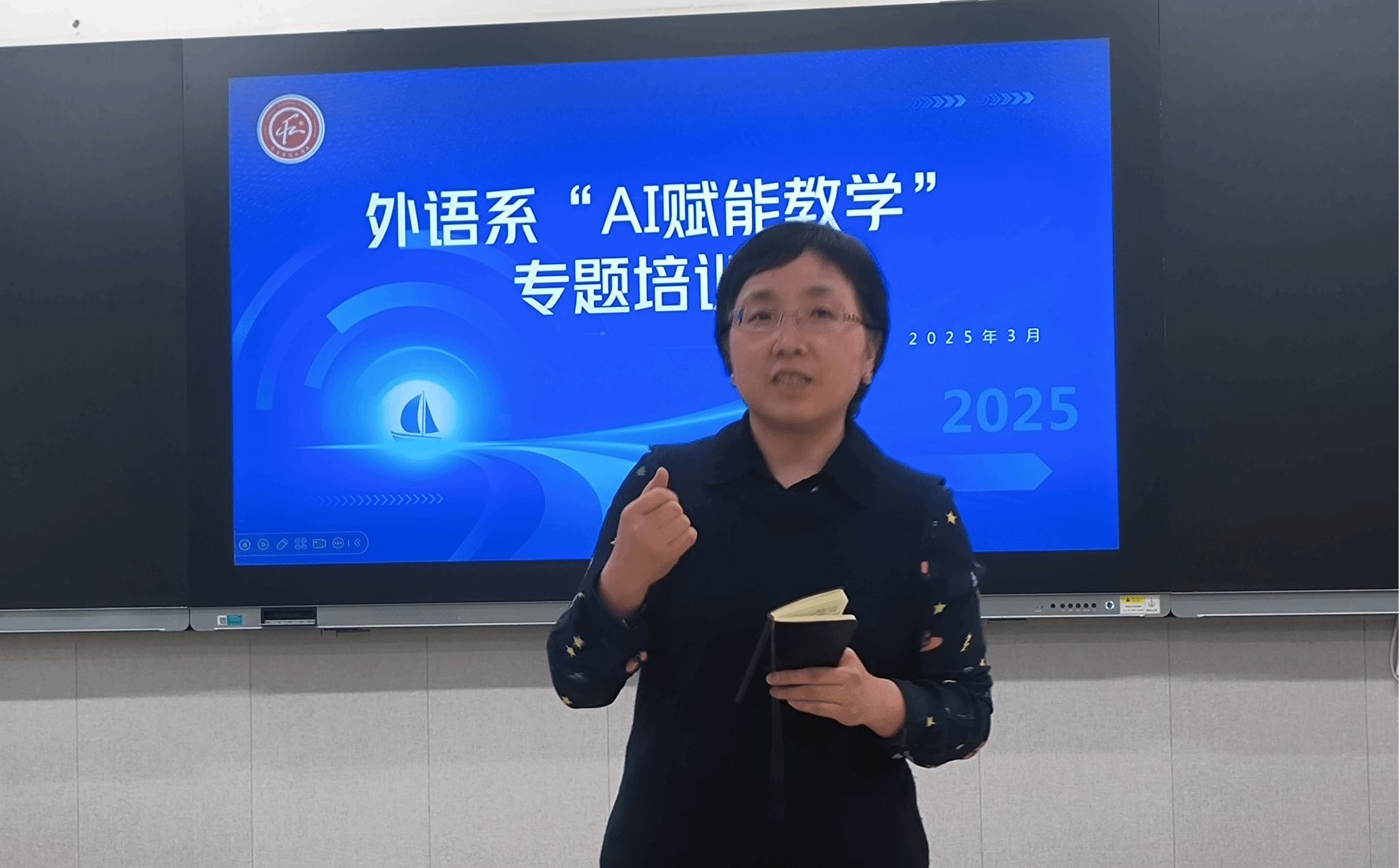 为推进人工智能与外语教学深度融合,2025年3月18日,必威西汉姆联成功举办了“AI赋能教学”专题培训,全系教师参与学习。活动聚焦AI技术应用与智慧课程建设,通过实践操作与案例研讨,助力教学模式革新与师资数字化能力提升。