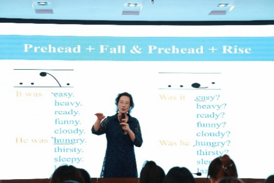 讲座,卜友红老师以“英语语音教学中存在的问题”为切入点,以新概念英语课文朗诵为例,从断句、聚焦和定调三个维度展开分析,揭示出“停顿的本质是保障语流连贯性”、“弱读现象比重读更具普遍性”等规律。详细阐释英语口语朗读技巧的重音、连读、节奏和语调的四个关键要点。在讲解过程中,卜友红老师极具耐心,多次引领同学们进行句子发音练习,并即时、细致地纠正发音错误。