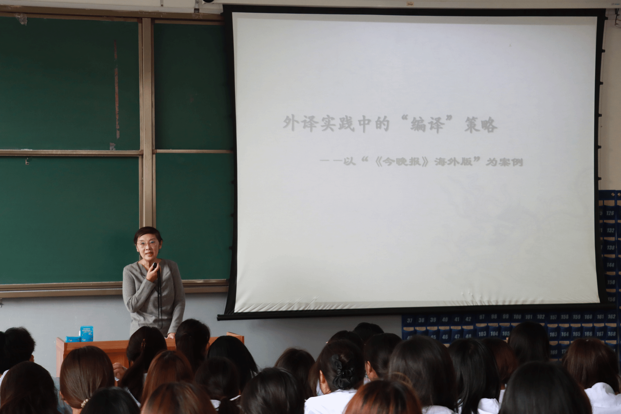 为提升学生的外语实践能力与专业素养,2025年10月14日,我系特邀天津外国语大学中央文献翻译研究基地常务副主任翻译学博士、二级教授、博士生导师李晶教授开展题为“外译实践中的“编译”策略”题讲座。讲座面向23、24、25级翻译专业全体学生及英语、商务英语专业学生,现场座无虚席。