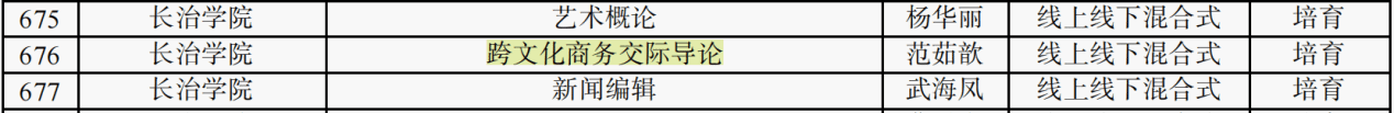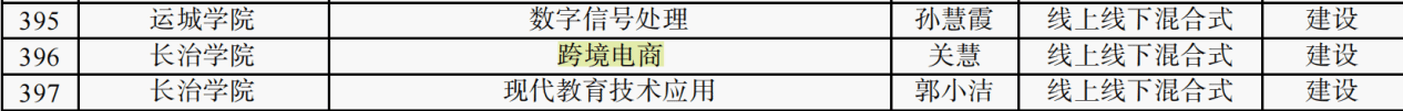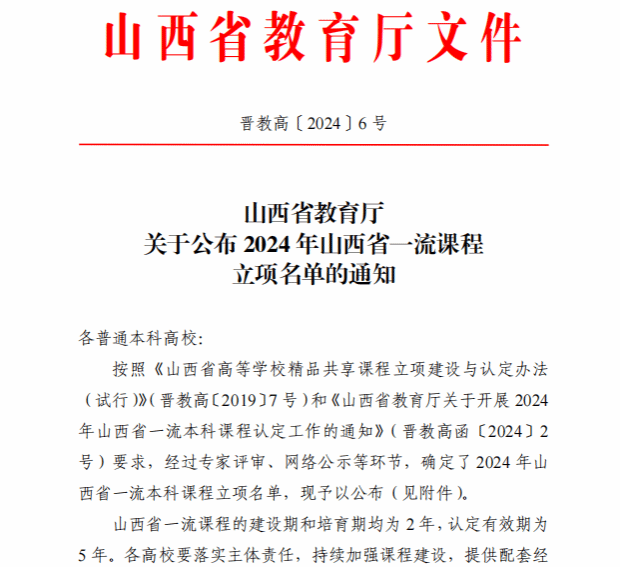 7月1日,山西省教育厅下发了《关于公布2024 年山西省一流课程立项名单的通知》(晋教高〔2024〕6 号),我系《商务口译》课程获批立项认定,《跨境电商》等3门课程获批立项建设,《跨文化商务交际导论》等3门课程获批培育。