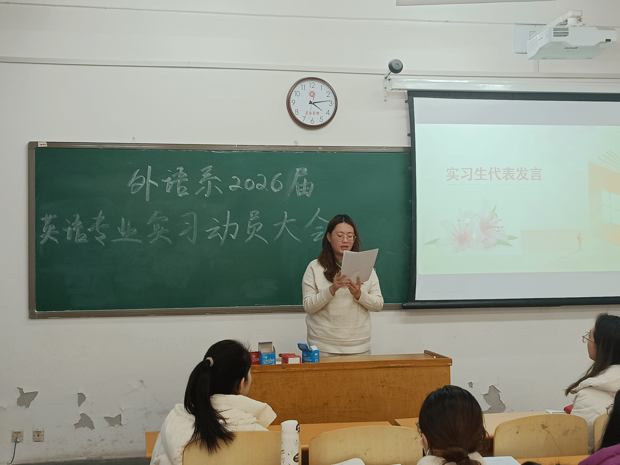 参会的同学们认真聆听,实习生代表上台发言,表示对即将到来的实习生活充满期待,也有信心通过实习锻炼自己,把握住本次宝贵的机会,为未来成为一名优秀的教师打下坚实的基础。